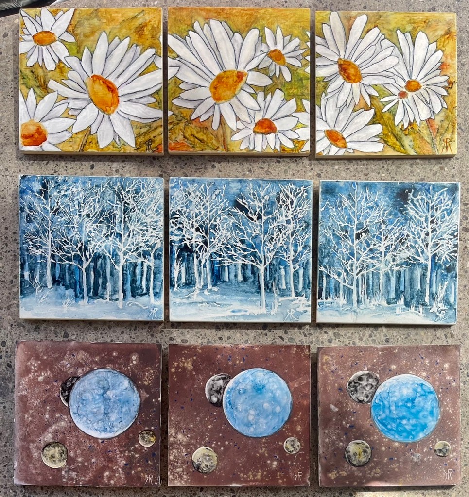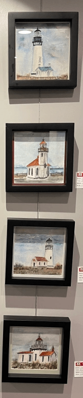 Created 2022 “Out From The Fog”, ink “Snoqualmie River Banks”, watercolor, gel medium, ink “Yaquina Head Lighthouse” watercolor, shown on Highline Heritage Museum, Burien exhibit poster. “Aztec Sun”, watercolor on polycarbonate paper, sold. “Seasons On Tassili #1”, watercolor on polycarbonate paper “42.., Life, Universe And Everything”, watercolor on polycarbonate paper, available. “Sycamore Alley”, watercolor, available. panels for Vision 2023, “Crazy Daisy”, “Blue Freeze”, “Third Moon Rising”, sold. “Blue Freeze”, SeaTac Art Show winner, purchased by City of SeaTac. “Bubble Trouble”, watercolor on polycarbonate paper, available. “Out From the Fog”, ink, available. “Night Patrol” watercolor on polycarbonate paper Share this: Click to share on X (Opens in new window) X Click to share on Facebook (Opens in new window) Facebook Like Loading...